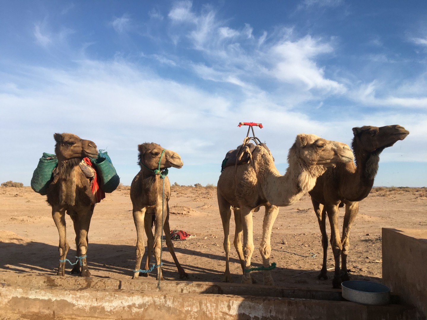 Après le petit déjeuner, départ de la caravane vers un puits ou les dromadaires pourront s’abreuver puis nous traverserons la Vallée du Draa aujourd’hui complètement asséchée. Ce sont des paysages différents.